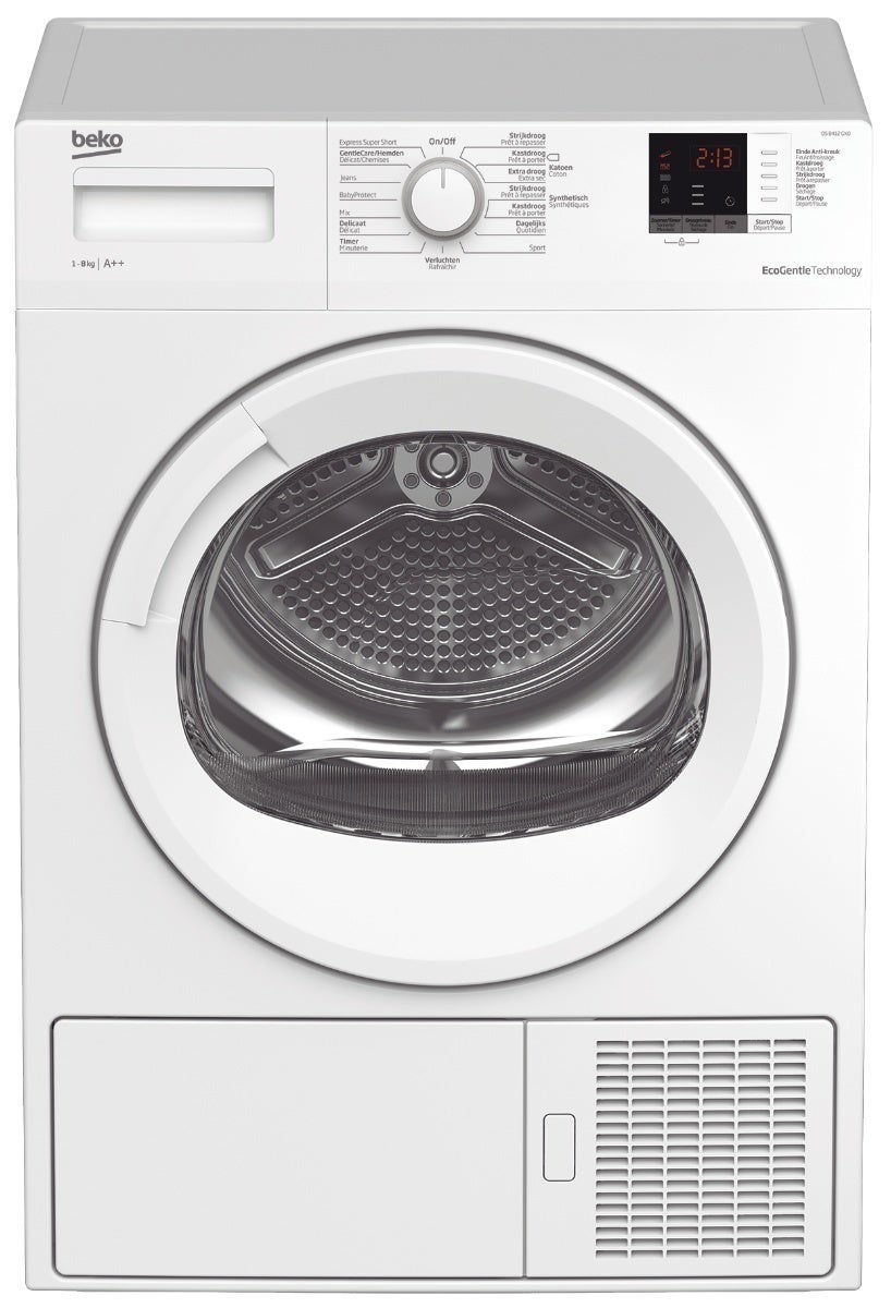 Perfect drogen zonder uitlopende kleuren Je bent gek op kleurrijke kleding, maar je garderobe is veranderd in vage pastelkleuren. Wat is er gebeurd? Aha, de wasdroger. Nu is er EcoGentle-technologie, waardoor kleding de oorspronkelijke kleur behoudt dankzij de innovatieve droogtechnologie. Een standaard condensdroger werkt samen met een airconditioningsysteem, waardoor kleding behoedzamer wordt gedroogd. Bovendien is de droger energiezuiniger. Golvende trommelbeweging voor zorgvuldige behandeling Drogen kan een nadelig effect hebben op je kleding. Maar het AquaWave-systeem met de deur van gebogen glas en de speciaal ontworpen peddels die het wasgoed in de trommel een golvende beweging laten maken, behandelt kleding voorzichtiger en droogt beter. Als iemand binnenkort een complimentje maakt over je kleding en jij zegt: 'œWat, dit oude ding?' dan meen je dat misschien ook echt.