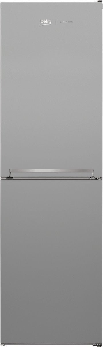 De Beko RCHE300K31SN is een koel-vriescombinatie met energieklasse A+ en een netto inhoud van 263 liter. Het koelgedeelte heeft een inhoud van 168 liter en de vrieskast van 95 liter. Je kunt er dus erg veel in kwijt. Om de ruimte in het koelgedeelte goed te benutten, heeft het 4 regelbare glazen leggers, 3 verstelbare deurvakken, een Super Fresh Vak 0-3°C groentelade van maarliefst 23 liter en een flessenrek in de deur. Het heeft een ingebouwde verdamper en met de regelbare thermostaat stel je eenvoudig de gewenste temperatuur in. Bovendien maken de antibacteriële deurrubbers de koelkast hygiënischer. Het vriesvak heeft 4 kunststof lades en een lade voor ijsblokjes. Dankzij de No Frost functie is ontdooien verleden tijd! De koel-vriescombinatie verbruikt z'n 0,852 kW/24 uur en heeft een geluidsniveau van 39 dB. De afmetingen zijn (H x B x D): 182,4 x 54 x 57,5 cm.