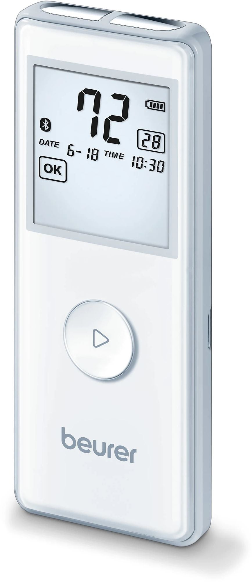 Met dit mobiele ECG-apparaat kun je eenvoudig thuis of onderweg je hartritme registreren en controleren. De gegevens kunnen via Bluetooth® naar je smartphone worden verzonden en in de bijbehorende 'Beurer HealthManager Pro'-app worden geanalyseerd.