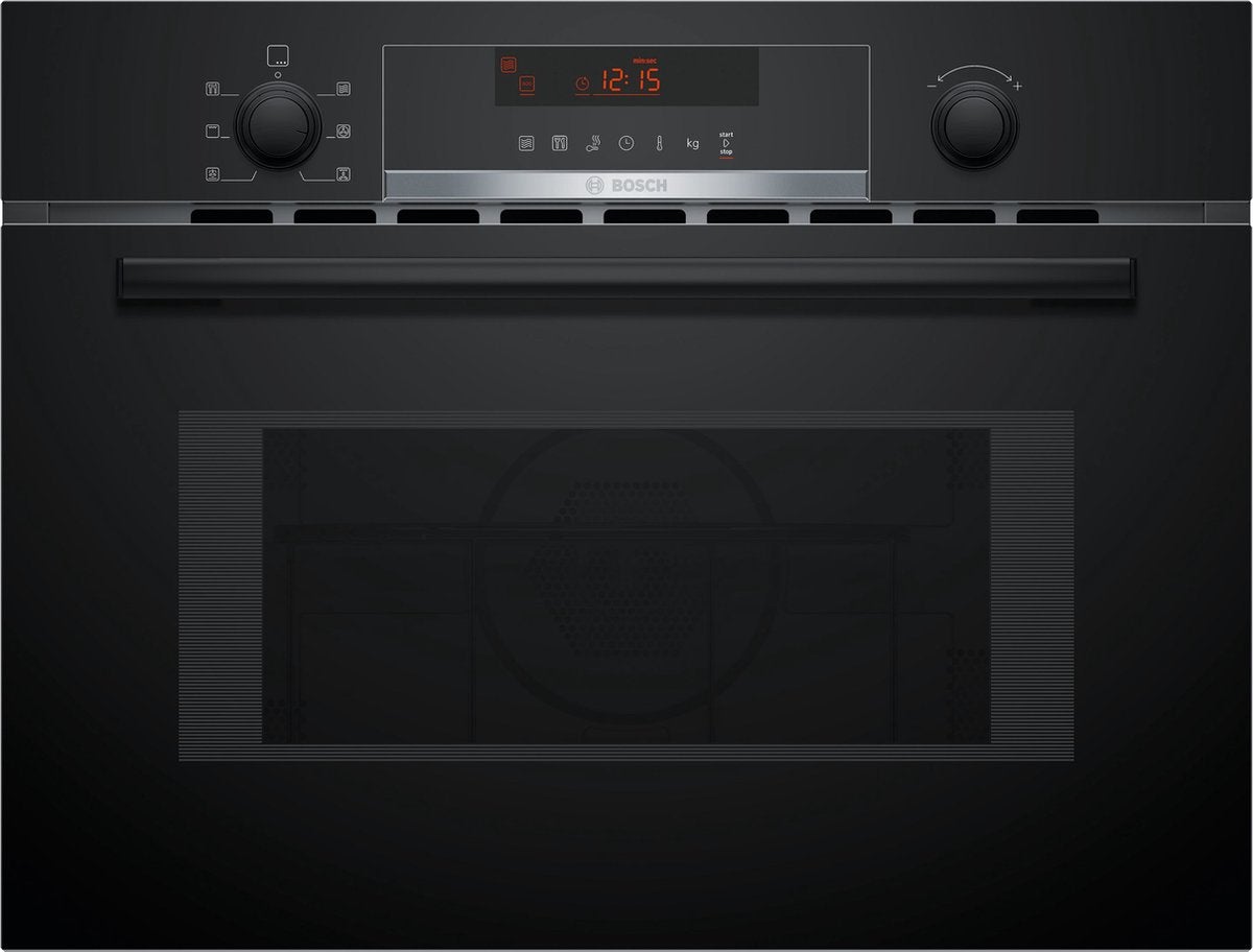 De Bosch CMA583MB0B is een compacte combi-magnetron die jouw keuken nét dat beetje extra geeft. Hij combineert het gemak van een magnetron met de kracht en veelzijdigheid van een heteluchtoven. Of je nu snel iets wilt opwarmen, een pizza knapperig wilt bakken of een ovenschotel wilt bereiden: met deze inbouwcombi zit je altijd goed. Ideaal als je een Bosch combimagnetron kopen wilt die stijlvol, krachtig en eenvoudig in gebruik is.