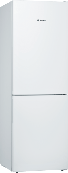 De Bosch KGV332WEA koel-vriescombinatie is voorzien van energielabel E en heeft een geluidsproductie van 42 decibel. De totale in houd van deze koel-vriescombinatie is 289 liter, waarvan 195 liter koelruimte en 94 liter vriesruimte. De koeler is voorzien van een geïntegreerde verticale handgreep en bevat 4 plateaus, waarvan 3 in hoogte verstelbaar. De koelruimte is voorzien van een VitaFresh lade waarmee groente en fruit langer vers blijven. Verder bevat de KGV332WEA nog de LowFrost en SuperVriezen functie.
