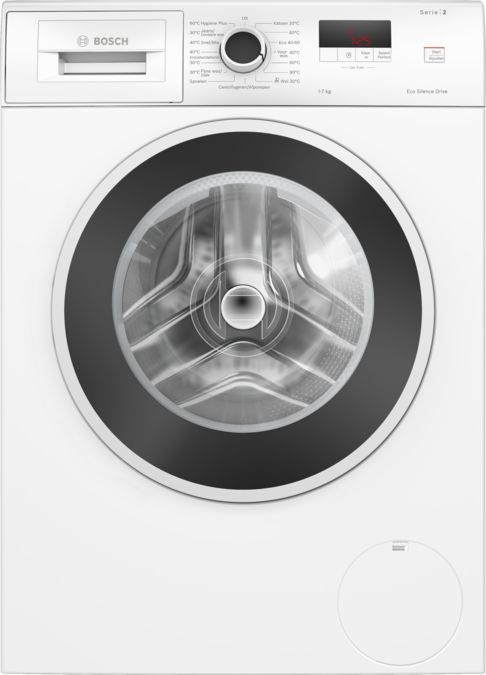 De Bosch WGE02406NL is een wasmachine met een capaciteit van 7 kilo en een toerental van 1400 toeren per minuut. Het apparaat heeft een energie-efficiëntieklasse A label, wat betekent dat het energieverbruik laag is en daarmee kostenbesparend. De wasmachine is voorzien van Active Water Plus technologie, waarmee het waterverbruik automatisch wordt aangepast op basis van de belading. Dit zorgt voor een efficiënte en zuinige werking, zonder in te leveren op de kwaliteit van de was.