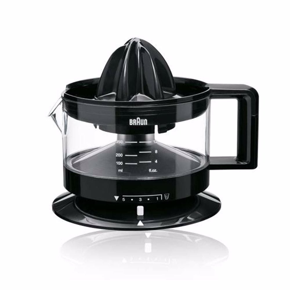 De Braun citruspers CJ 3000 BK is een zeer gebruiksvriendelijke citruspers voorzien van een handig 350ml sapreservoir met een duidelijke maatverdeling. Met 20W vermogen pers je gemakkelijk vruchten uit. Door middel van de automatische links- en rechtsdraaiende perskegel haal je de optimale hoeveelheid sap uit de vrucht. Na gebruik kan je de losse onderdelen van de citruspers in de vaatwasser plaatsen.