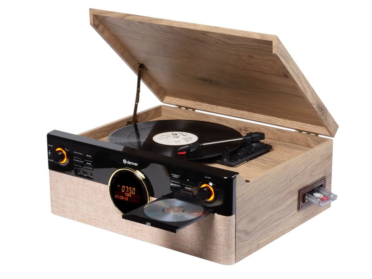 Met de Denver MRD-180 luister je naar DAB+ en FM-radio, speel je cd’s en cassettes af en geniet je van je vinylcollectie. Ook muziek via USB of Bluetooth streamen is zo geregeld.