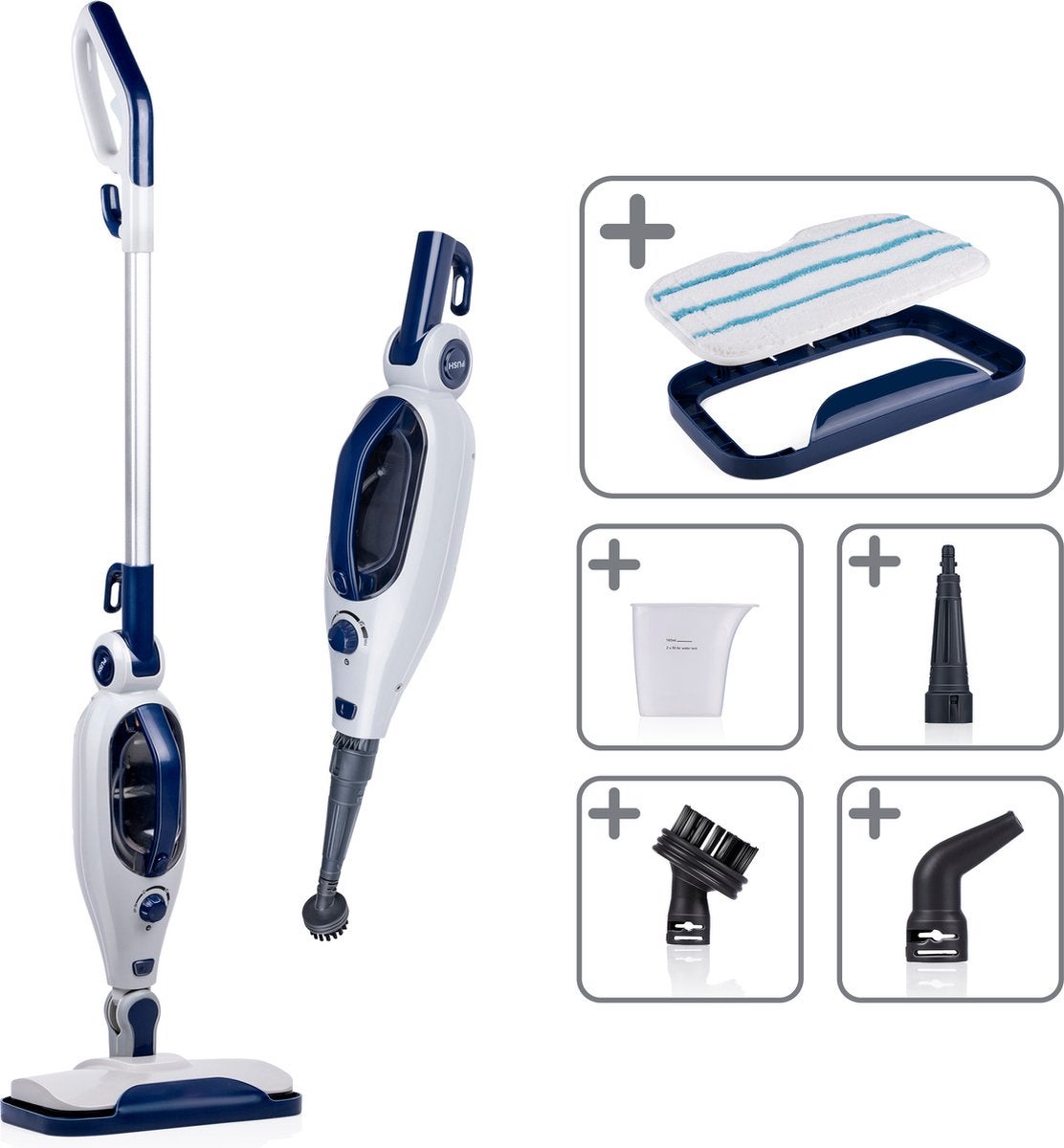 - Standaard meegeleverdRonde borstel, Stoommop, Vloerkop en tapijtglijder, Microvezel onderlegger, Gebogen mondstuk