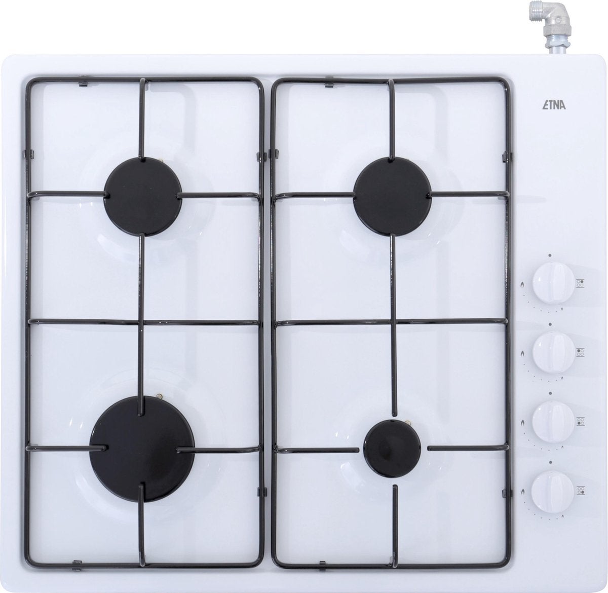 De witte vrijstaande 4-pits gaskookplaat van ETNA heeft lichte pandragers van bandstaal, die daardoor gemakkelijk schoon te houden zijn. De kookplaat beschikt ook over vlambeveiliging waardoor u zich geen zorgen hoeft te maken over de veiligheid in huis. En het design mag er ook wezen.
