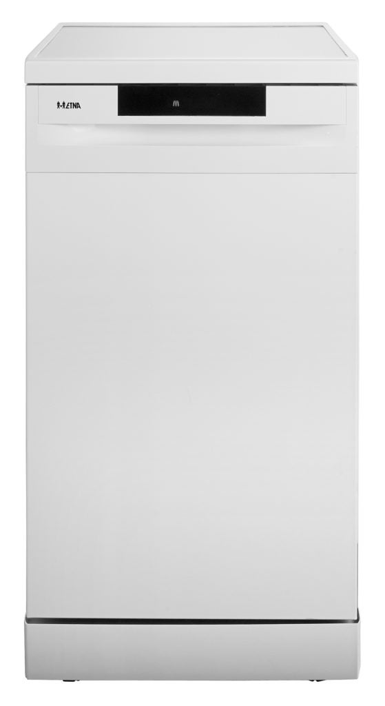 Deze vrijstaande, slimline vaatwasser is ideaal voor wie veel wensen heeft maar weinig ruimte. De ETNA VWV147SW is een smalle, vrijstaande vaatwasser met een efficiënte indeling en veel handige functionaliteiten. Hij biedt ruimte aan negen couverts en heeft een bovenkorf die in hoogte verstelbaar is. De witte vaatwasser heeft vijf programma's, van snel of spoelen tot een intensief programma. De reinigingstemperatuur varieert van 40 tot 60 graden Celsius. Heb je een dagje niet zo veel vaat, dan stel je de vaatwasser op halve belading in zodat je ook geen water of energie verspilt. De VWV147SW controleert automatisch of er nog voldoende zout en glansmiddel is.