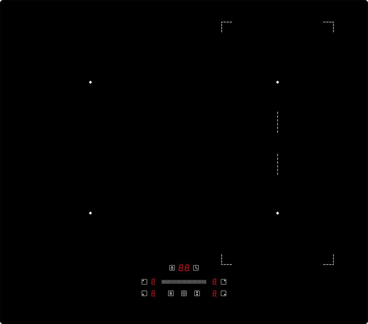 - 4 inductiezones: snel en energiezuinig koken met directe warmte