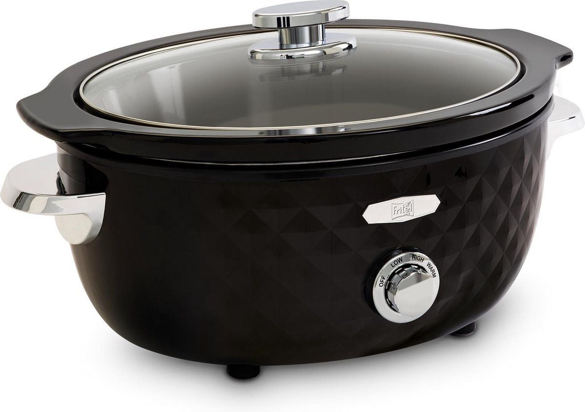 Het deksel is gemaakt van getemperd glas en is schokvrij en bijna onbreekbaar. Zo kook je met een gerust gevoel. De cool touch handgrepen blijven koel tijdens het koken, waardoor je de slow cooker veilig kunt verplaatsen. Het Diamond Design in zwart en chroom geeft het apparaat een stijlvolle uitstraling die past in elke keuken.