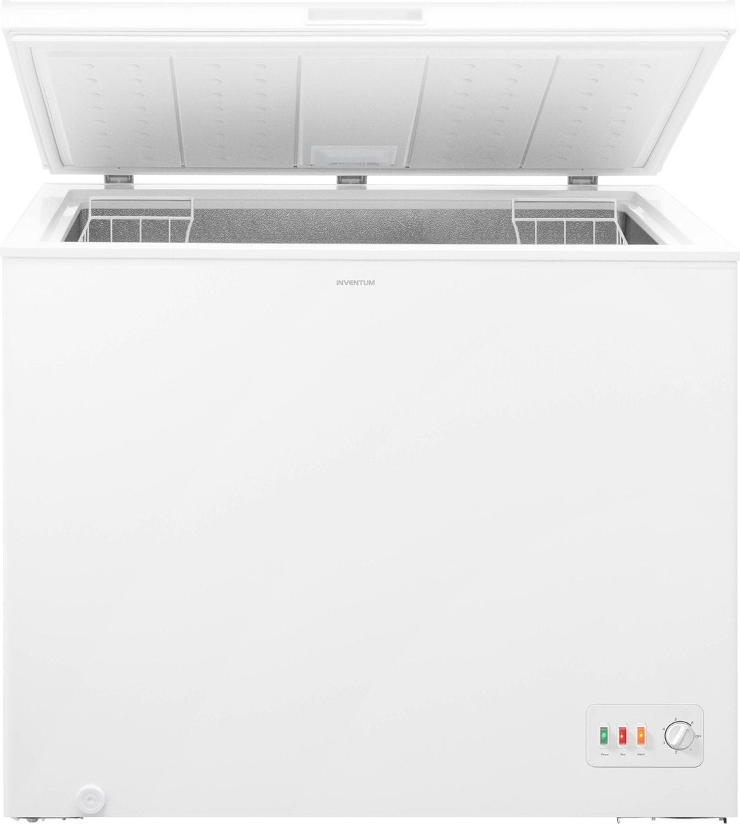 De Inventum vrijstaande vrieskist VK1285W heeft een inhoud 300 liter. Het 4-sterren apparaat heeft een invriesvermogen van 13,5 kg/24u en energieklasse C. Dankzij de luxe led-verlichting heb je goed zicht op de hele inhoud. Bewaar kleinere ingevroren etenswaren in de 2 uitneembare opbergkorven. Dan kun je ze niet over het hoofd zien en gemakkelijk pakken. De thermostaat heeft 7 standen. Je kunt daarmee de temperatuur instellen van -12°C tot -28°C. Door de 2 wielen is het apparaat gemakkelijk te verplaatsen en kan zelfs in een ruimte worden gezet tot -15°C, zoals een garage. Ontdooien van de vrieskist gaat eenvoudig door de handige dooiwaterafvoer en de meegeleverde ijsschraper.