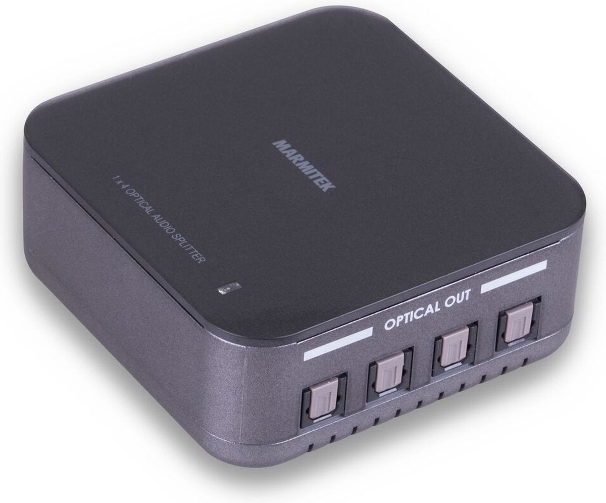 Gebruik deze optical splitter om 1 apparaat met Toslink uitgang te verbinden met 4 versterkers/receivers met Toslink ingangen.