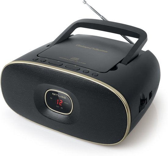 De Muse MD-202VT is een zeer compacte en gebruiksvriendelijke draagbare radio, CD-speler. Luister naar uw favoriete muziek waar u ook bent! Dat kan doordat de radio een draagbeugel heeft en niet alleen op stroom maar ook op batterijen werkt, kortom eenvoudig mee te nemen. Middels de AUX-aansluiting kunt u ook opgeslagen muziek van bijvoorbeeld een MP3-speler afspelen. Met de playback functie kan de favoriete muziek geselecteerd, herhaald worden of een willekeurige track worden gekozen. De Muse M-202 VT is dus prettig voor de oren maar met zijn strakke design en gouden afwerking zeker ook een sieraad voor de ogen. Altijd al goud in huis willen hebben? Koop dan snel dit parade paardje van Muse.