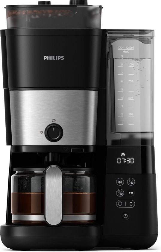 De smaak van verse bonen in elk kopje, ontspannend om te maken, heerlijk om te drinken. Heerlijke koffie van verse bonen met de Philips All-in-1 Brew HD7888/01 filter-koffiezetapparaat: Je kunt jouw familie wakker maken met een volle kan, of jouw favoriete mok vullen voor een middagpauze. Kies de sterkte en de machine neemt precies genoeg water voor een perfecte koffie op de perfecte temperatuur.