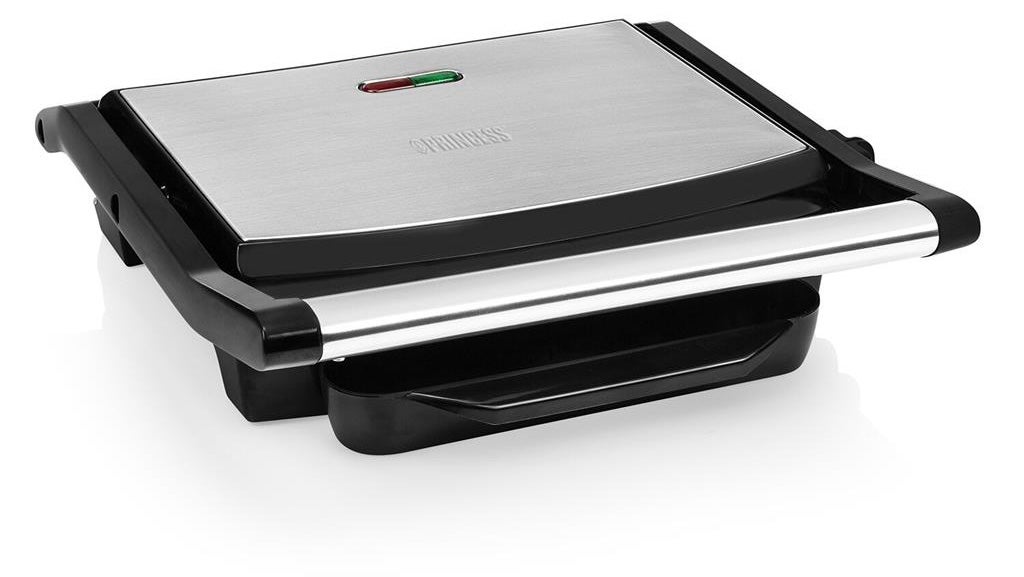 Slim design Het stijlvolle RVS uiterlijk van de Princess contactgrill past goed in elk interieur. Het design van het handvat maakt het niet alleen comfortabel om de grill aan te drukken, maar zorgt er ook voor dat je de grill horizontaal kan opbergen. Daarnaast heeft de grill een slimme vergrendeling waardoor deze niet openklapt bij het optillen en verplaatsen.