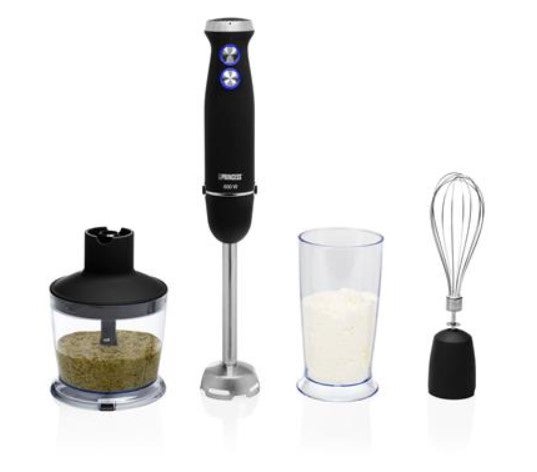Wat vind je in de doos: Princess Staafmixerset, maatbeker, hakmolen, klopper, handleiding