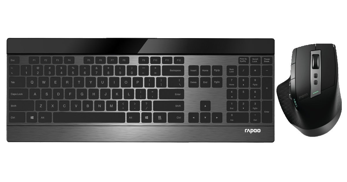 Deze elegante geavanceerde draadloze set ziet er geweldig uit op elke tafel met zijn stijlvolle, gestroomlijnde ontwerp. Het toetsenbord heeft een indrukwekkend ultradun maar toch stevig ontwerp van 4,0 mm en een geanodiseerde aluminium behuizing. De Fn-multimediatoetsen bieden snelle toegang tot alle belangrijke multimediafuncties. De 9900M-set beschikt ook over een geavanceerde draadloze muis met superieur comfort en functionaliteit. Nauwkeurige navigatie op vrijwel elk oppervlak is mogelijk dankzij de krachtige lasermotor en volledig instelbare 3200 DPI. 9900M is niet alleen geavanceerd in ontwerp en functies, maar ook in connectiviteit. De desktopset verzendt via Rapoo's nieuwste multi-mode draadloze verbinding - met behulp van betrouwbare 2,4 GHz draadloze transmissie, Bluetooth 3.0 of Bluetooth 4.0 (Smart) - zodat u tegelijkertijd verbinding kunt maken met meerdere apparaten en er tussen kunt schakelen (automatisch koppelen). Om het af te maken, is deze set voorzien van een oplaadbare batterij, zodat u kunt genieten van draadloze vrijheid zonder batterijen te vervangen