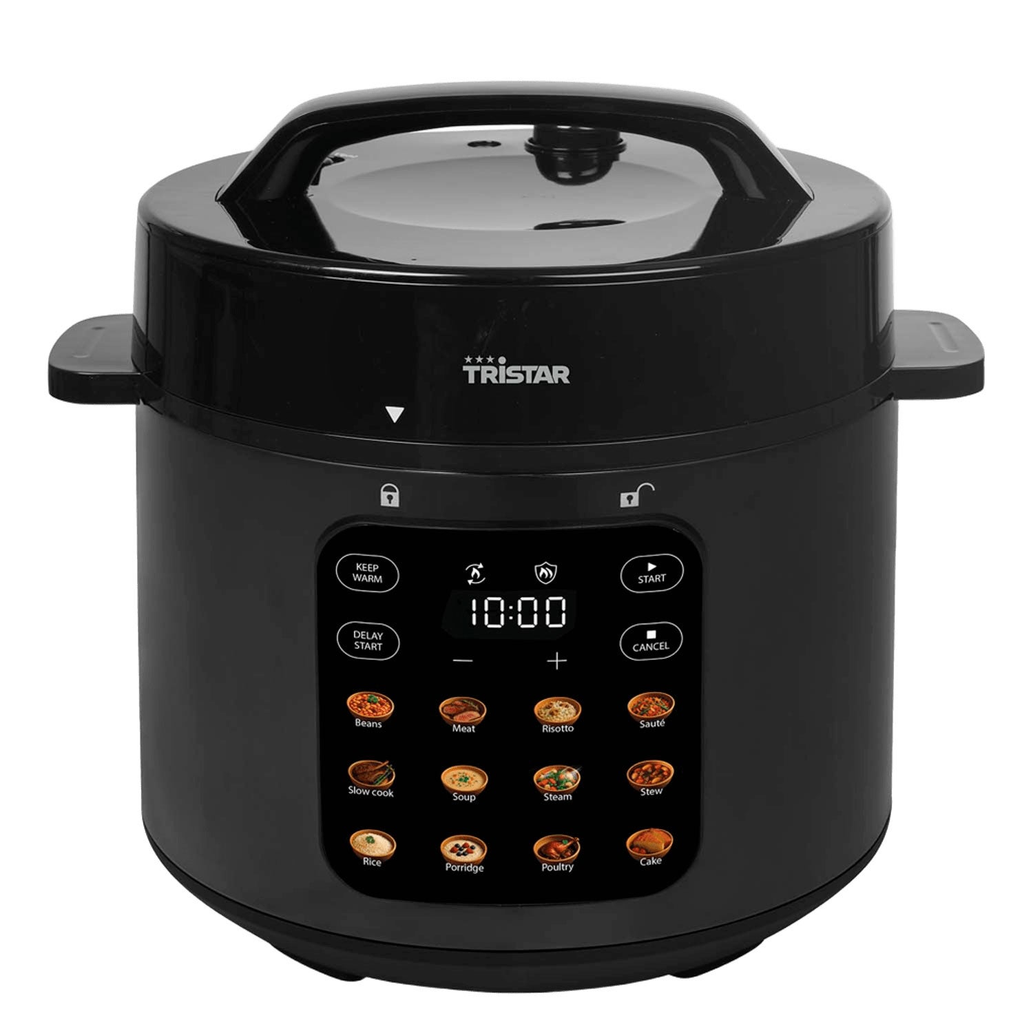 De Tristar RK-6160 is een veelzijdige elektrische snelkookpan waarmee je sneller én gezonder kookt. Soep, rijst, stoofpotjes of zelfs yoghurt. Met één druk op de knop staat het straks te pruttelen. Dankzij de royale inhoud van 6 liter is deze pan perfect voor gezinnen of als je graag vooruit kookt. Wil je een elektrische snelkookpan kopen die makkelijk werkt en veel tijd bespaart? Dan is deze Tristar een slimme keuze.