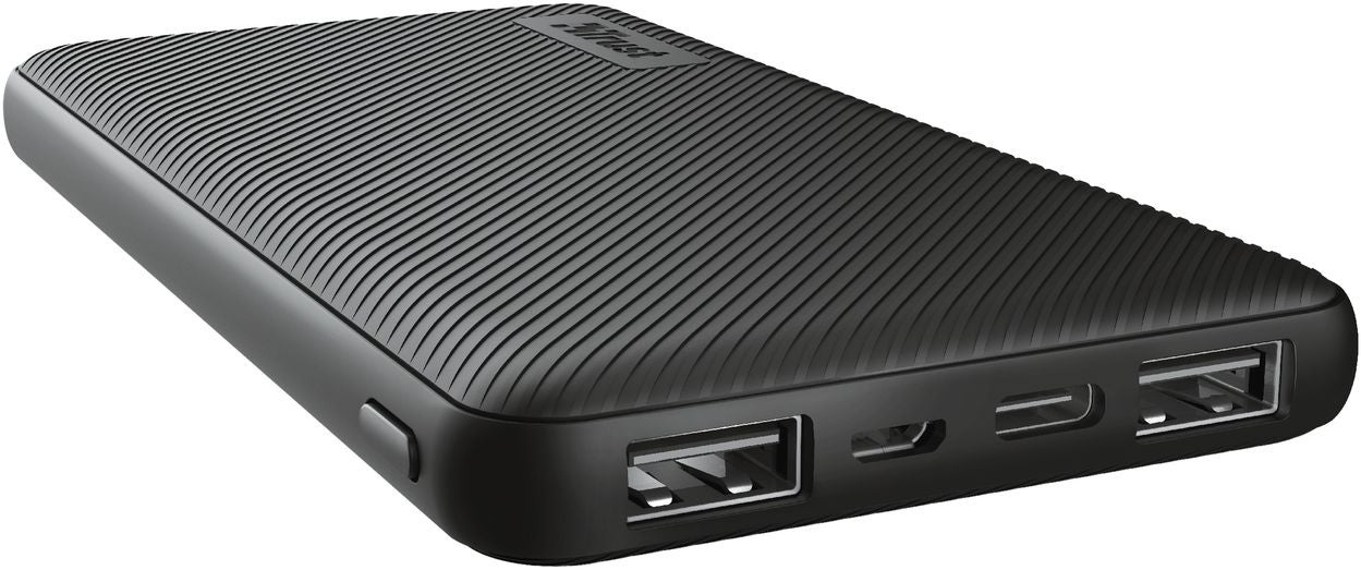 Gelijktijdig drie telefoons of tablets van alle merken opladen? Dat kan via de drie poorten: 2 USB-A en 1 USB-C. Zodat je altijd bereikbaar bent en klaar om aan het werk te gaan. Laad de powerbank zelf binnen 6 uur op via de inbegrepen micro-USB-kabel of USB-C-poort.