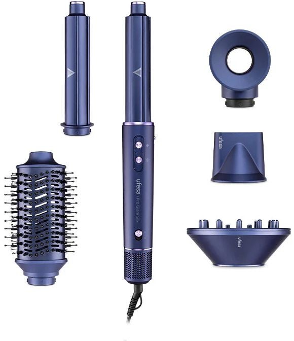 De Ufesa Pro Glam Silk Haarstyler is een complete alles-in-één stylingtool waarmee je je haar snel droogt, styled en perfect in model brengt. Dankzij de krachtige technologie en slimme accessoires creëer je in korte tijd een professionele look, zonder extreme hitte. Ideaal voor wie tijd wil besparen en toch elke dag verzorgd voor de dag wil komen.